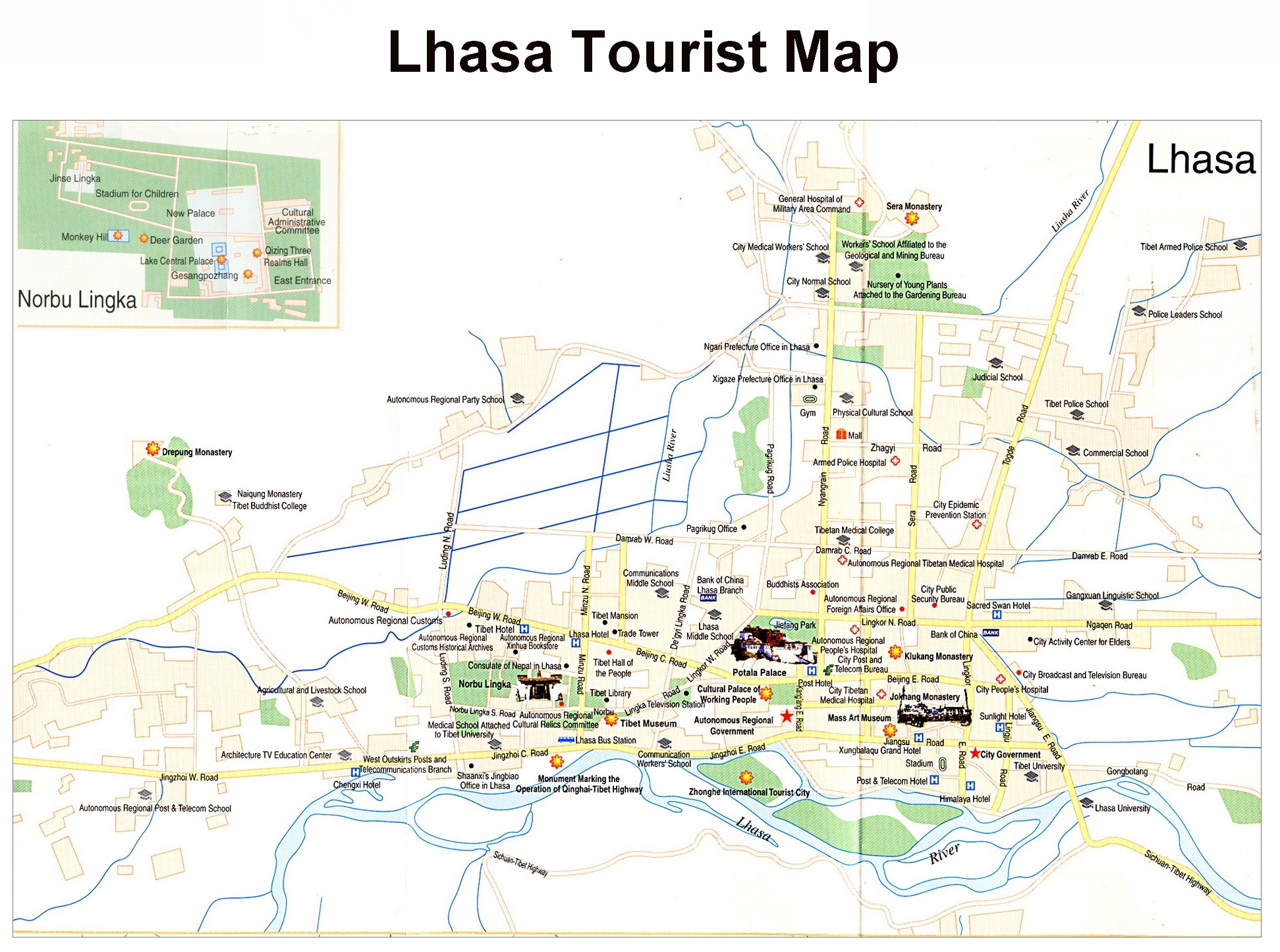 Tourist Map Of Lhasa City Map Of Lhasa Attractions