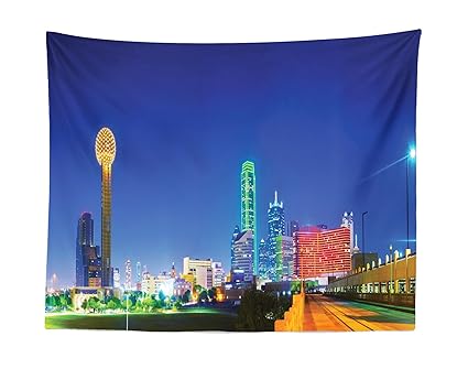 Lunarable Usa Tapestry Panoramic Overview Dallas Tx In The Night Tourist Attractions Famous Cityscape Image Fabric Wall Hanging Decor For Bedroom
