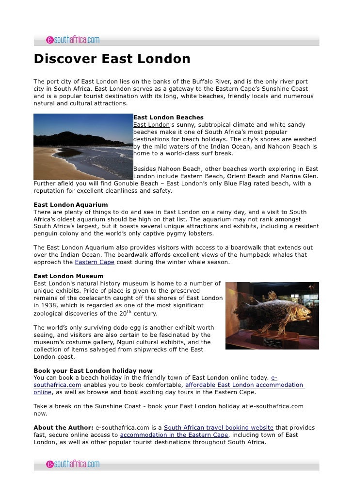 East london tourism. The eastern cape is an interesting place to visit. We have reviews of the best places to see in east london.