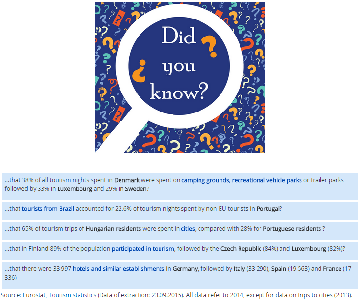 First results of this exercise are presented in a statistics in focus publication. Eurostat is currently exploring ways to integrate sbs andor sts short term business statistics data for certain so called tourism characteristic activities in the tourism statistics databases. Romania was among the least popular tourist destinations for foreign tourists in the eu in 2015 along with much smaller countries such as slovakia latvia and luxembourg according to data from.