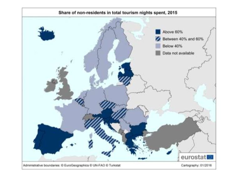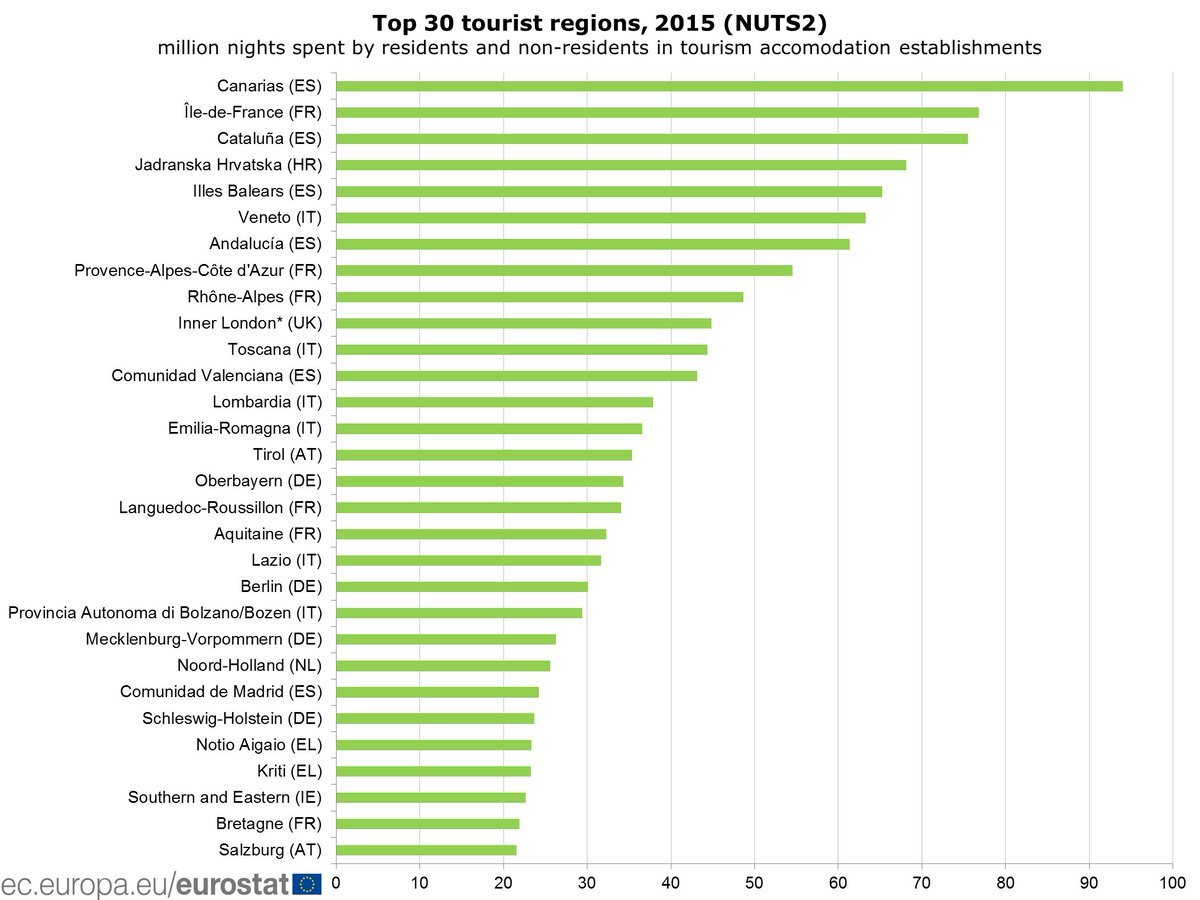 Eurostat tourism destination. Capacity and occupancy of tourist. Europe is also the worlds number one tourist destination. Eurostat touroccninat in 2017 spain was the most common tourism destination in the eu for non residents people travelling outside their country with 306 million nights spent in tourist accommodation establishments or 200 of the eu 28 total see figure 2 and figure 3.
