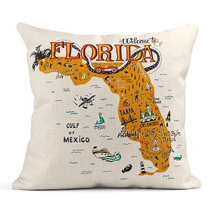 Emvency Decor Flax Throw Pillow Covers Case Cartoon Of Florida Map With Tourist Attractions Travel Miami Drawn Hand Orlando 20 X20 Square Linen Cases