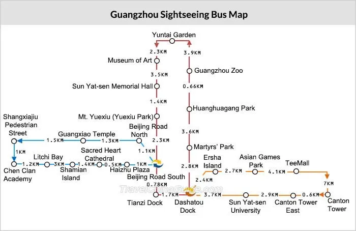 Guangzhou City Bus Sightseeing Tourist Bus Route Stops