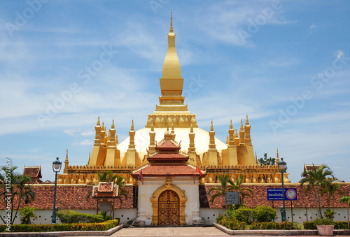 Laos Travel Landmark Golden Pagoda Wat Phra That Luang In