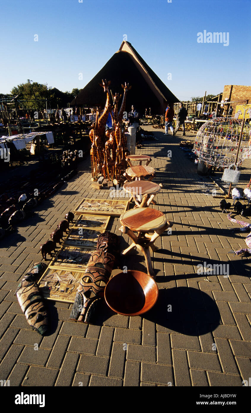 African Craft Market Scene Of Wood Tables Giraffes Curios