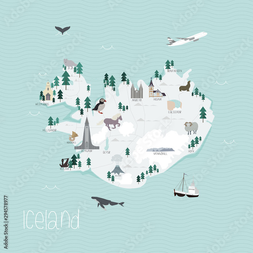 Iceland Cartoon Vector Map Travel Illustration With Landmarks