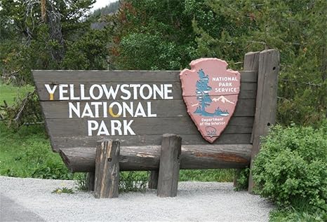 Csfoto 7x5ft Background For Yellowstone National Park Wooden Sign Photography Backdrop Tourist Attraction Indicator Famous Landmark Vacation Journey